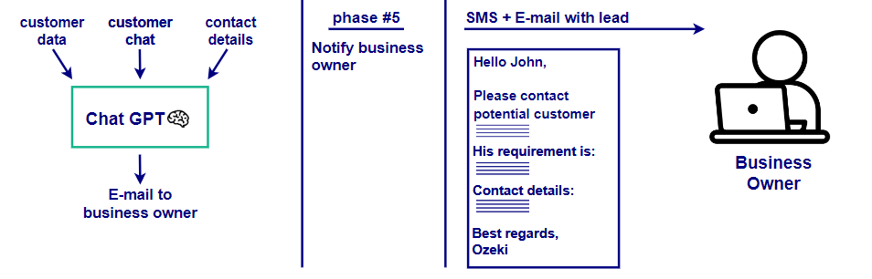 The final phase involves consolidating the communication data as shown in Figure 5. Once a customer expresses interest, the AI generates a detailed report and notifies the business owner via email. This report includes personalized customer responses, contact information, and relevant details for follow-up. The business owner can then take direct action to convert leads into customers, leveraging the AI's data-driven insights to close the deal.