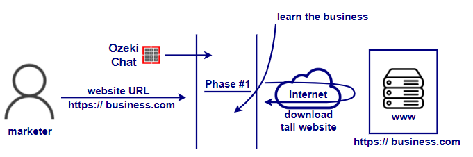 As you can see in Figure 1, the first phase involves a marketer entering the URL of the business's website into Ozeki Chat. The AI then accesses the internet to download and analyze the website content. This process allows the AI to "learn" about the business, its offerings, and its unique characteristics. The AI uses this information to tailor subsequent marketing strategies specifically to the business.